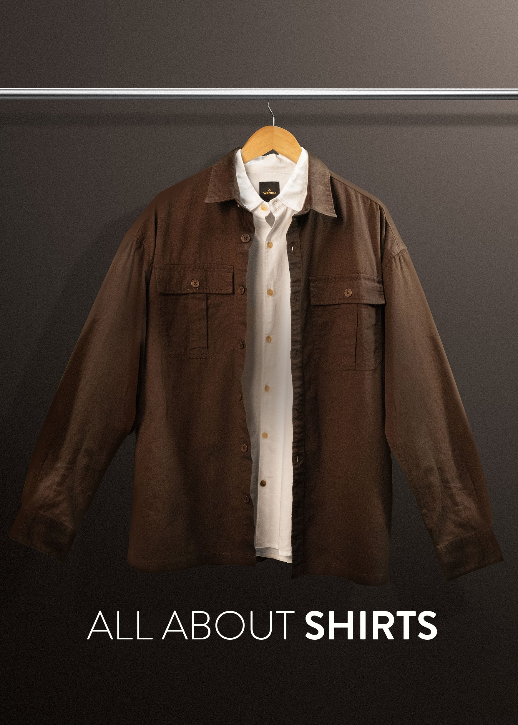 Men's casual front zipper double pocket shacket | Brown