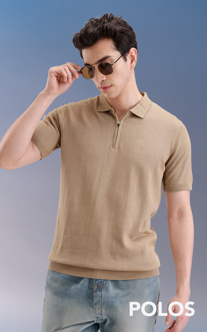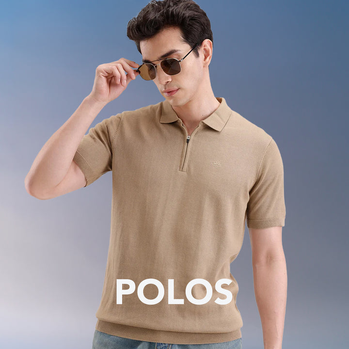 Premium Flat Knit Johnny Collar Polo T-Shirt | Brown