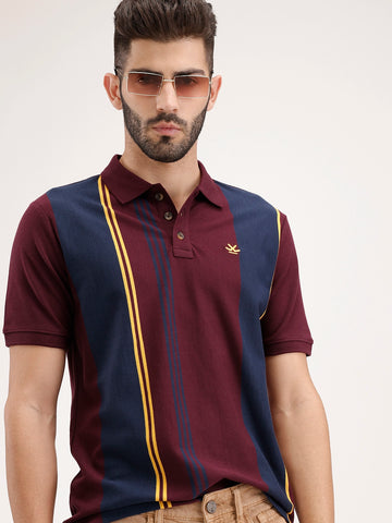 Slim Fit Pannel Printed Polo T-Shirt | Maroon