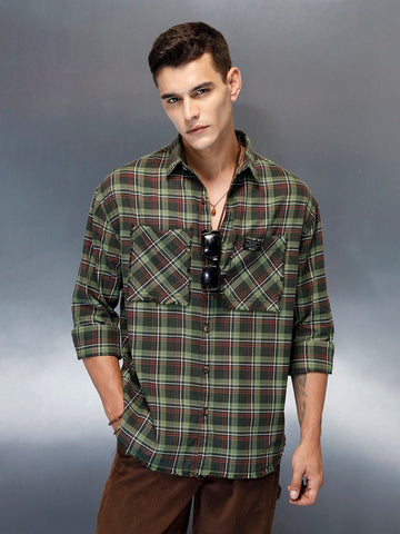 Men's Casual Oversized Fit Checkered Pattern Shirt | Green