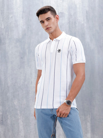 Men's Casual Regualr Fit Striped Pattern Polo T-Shirt | White