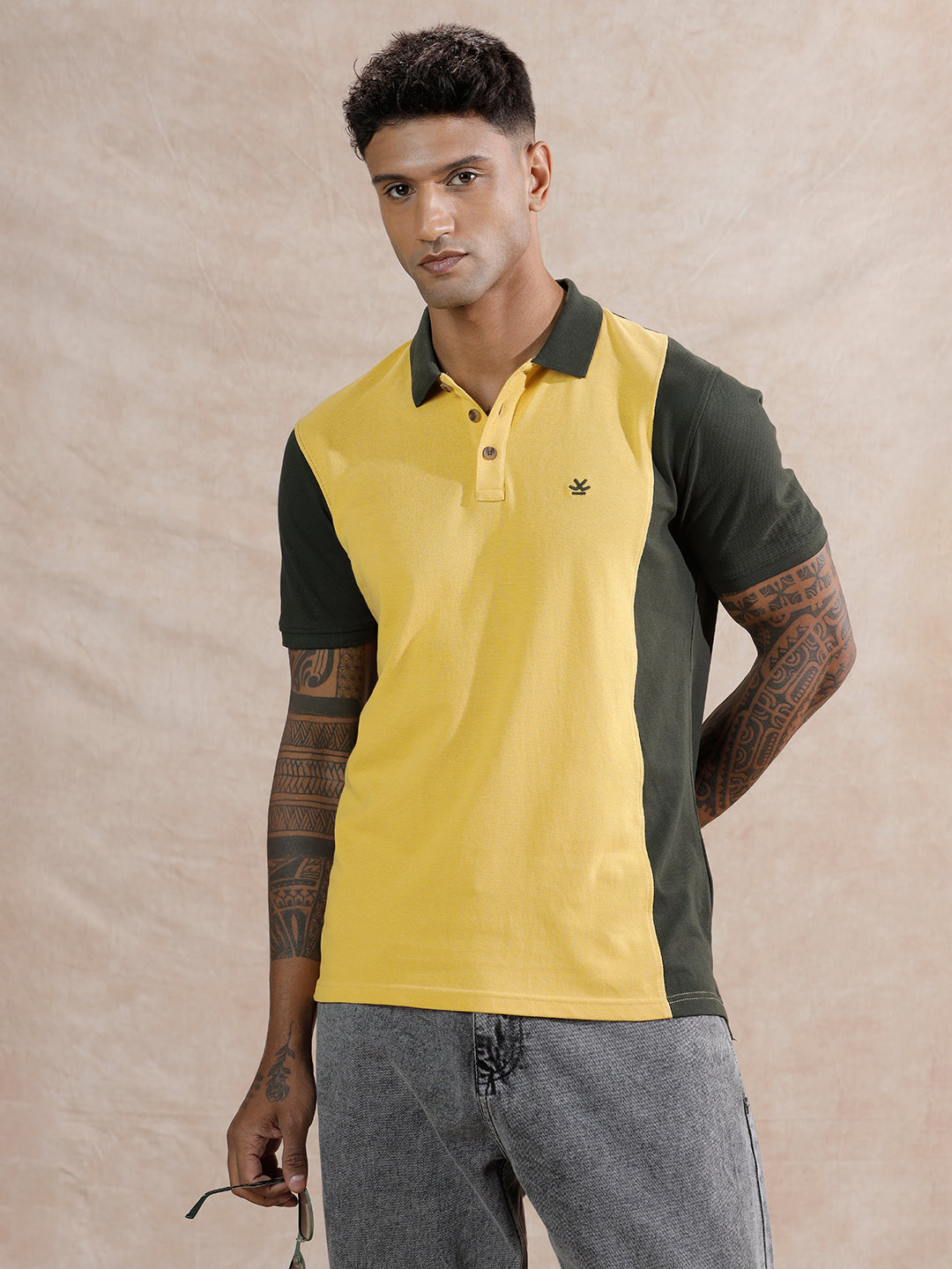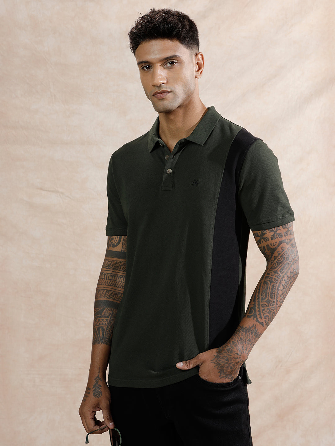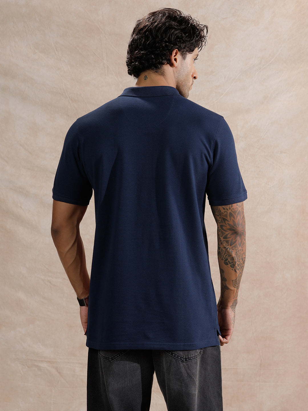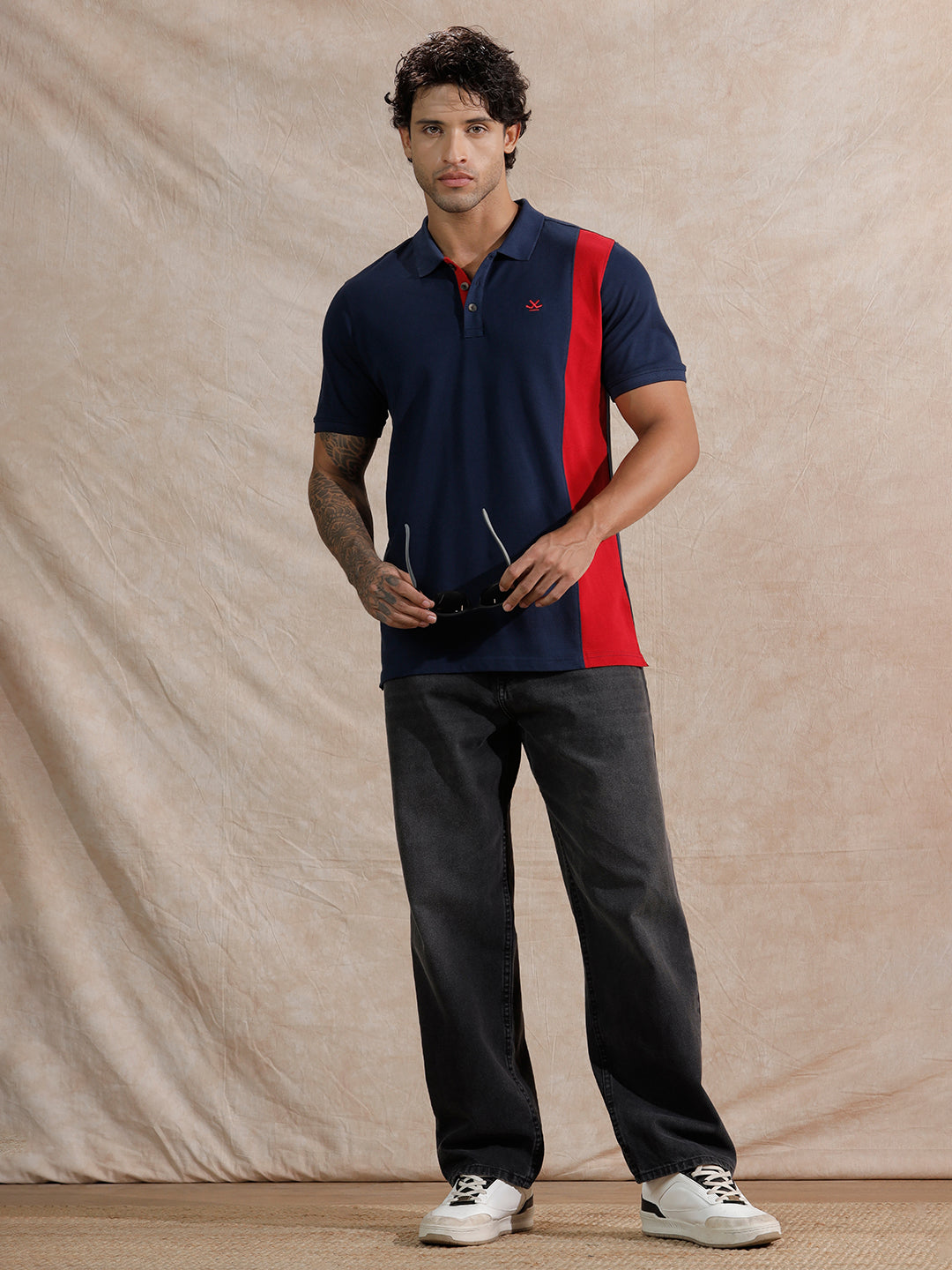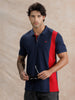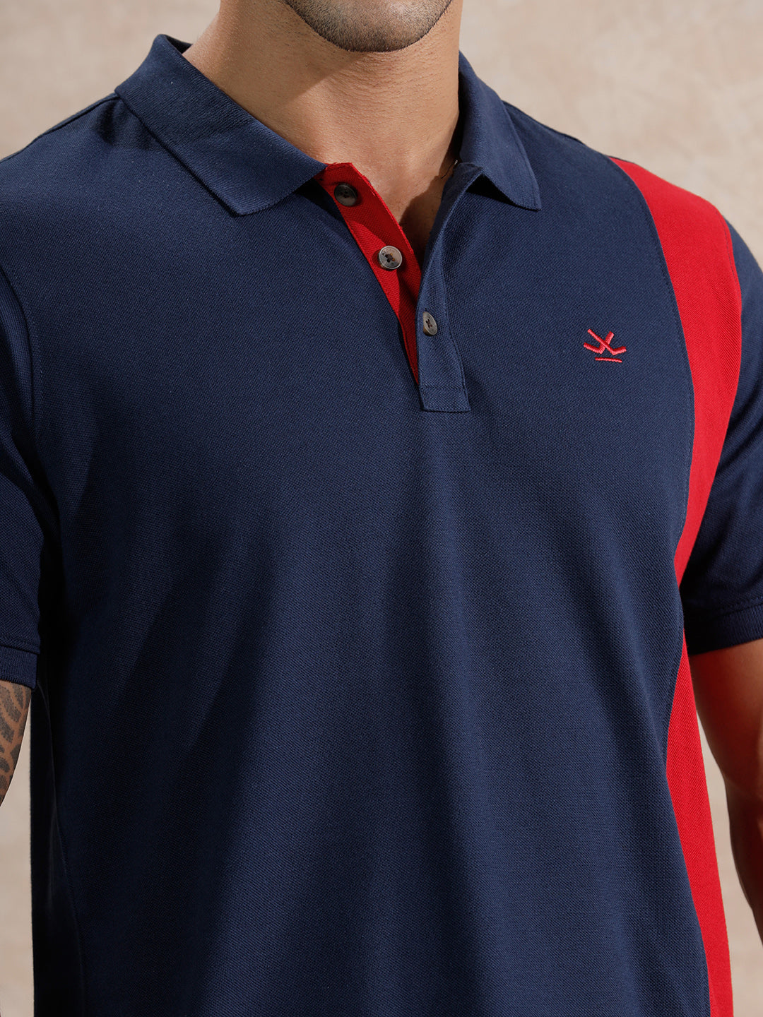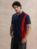 Asymmetric Colour Blocked Polo T-Shirt | Navy Blue