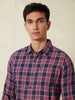 Make a statement with our Classic Red Checkered Slim Fit Shirt, showcasing vibrant checks and a tailored fit for smart-casual occasions.