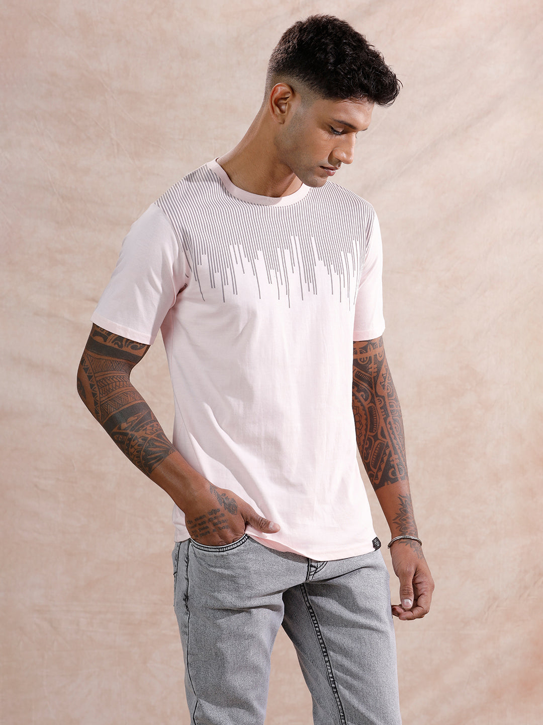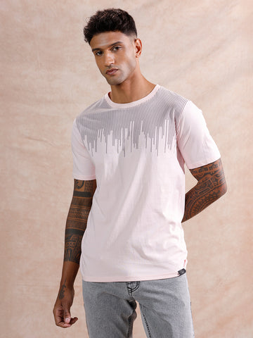 Dripping Stripe Printed T-Shirt | Pink