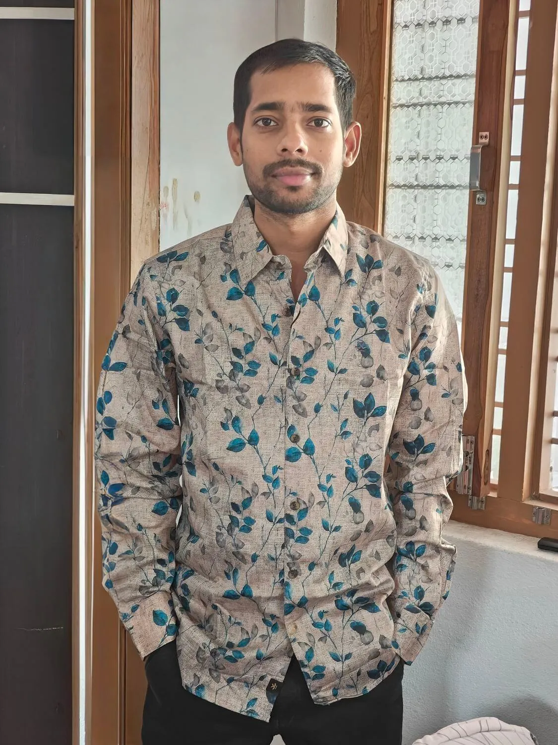 Statement-ready with a satin touch. This khaki slim-fit shirt is elevated with a printed design and subtle shine. Sits smooth on the skin, fits sharp on the body. Built for nights out and plans that run late. Glossy but grounded.