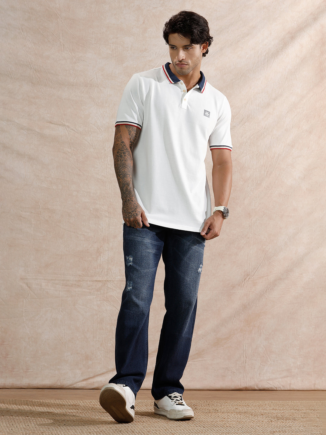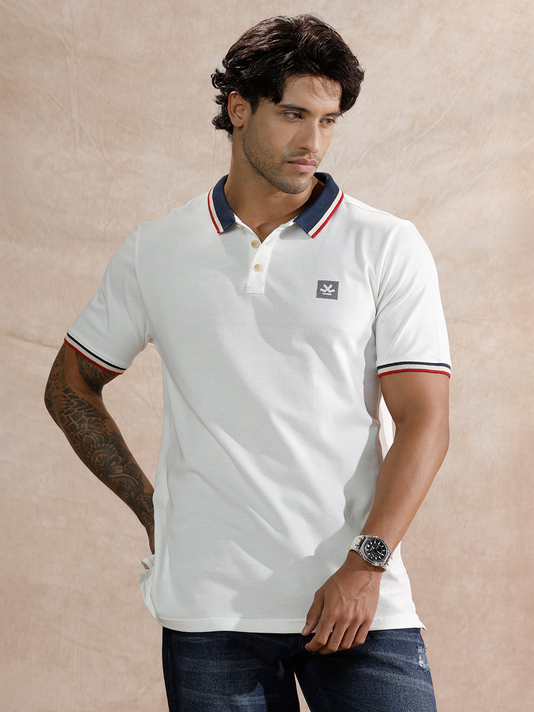 Clean base, bold edge. This white polo adds colour contrast with its pop-tipped collar, making it anything but ordinary. A crisp upgrade to your casual rotation.