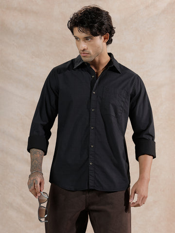 This shirt takes monochrome to the next level with a play of texture and printed checks. A tailored regular fit ensures ease of movement while keeping your look sharp. A wardrobe cornerstone for the contemporary man.
