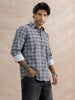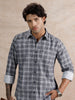 Textured Printed Checks Regular Fit Shirt | Navy Blue