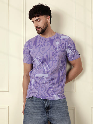 Graffiti AOP Slim Fit T-Shirt | Purple